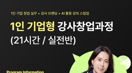 [1인 기업형 강사창업과정 실전반 수강생 모집] 1인 기업 창업 실무 + 강사브랜딩 + 강의 스킬업 프로그램…