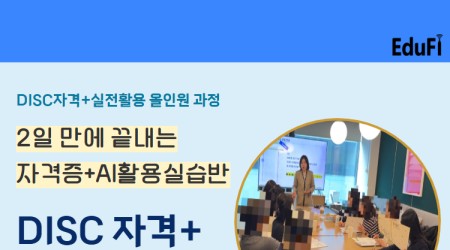 안녕하세요!모두가 함께 나누는 교육의 즐거움에듀파이교육센터입니다 :-)2026년 DISC 행동유형 강사양성과정의 원데이클래스의 심화 과정인 DISC 강사양성과정 2일반 수강생 모집 안내드립니다.DISC 1일 기본반으로 아쉬움을 가지는 분들을 위한 실전강의+생성형 AI 활용 실습 과정을 포함한 2일 과정입니다.[1기] 2…